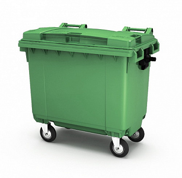Waste bin for solid waste 1100 l with a lid on wheels