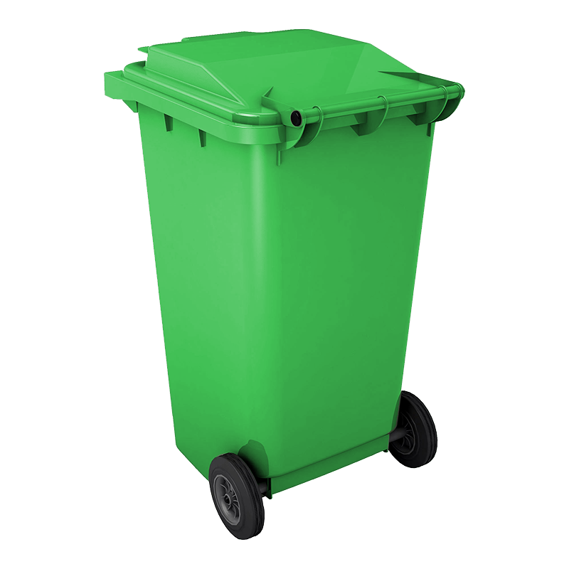 Plastic waste bin 140 l with lid on wheels